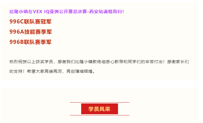 【喜报】比隆小镇荣获VEX 亚洲公开赛总决赛冠军、季军!
