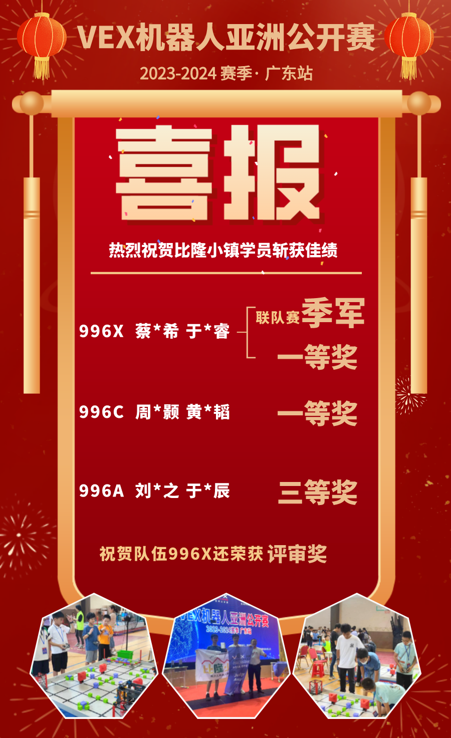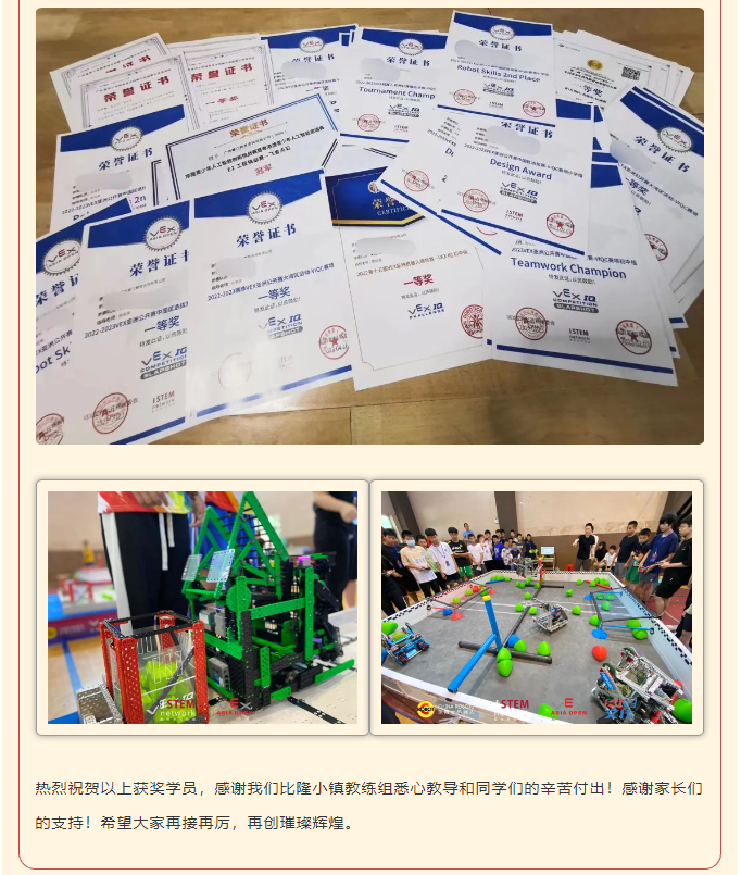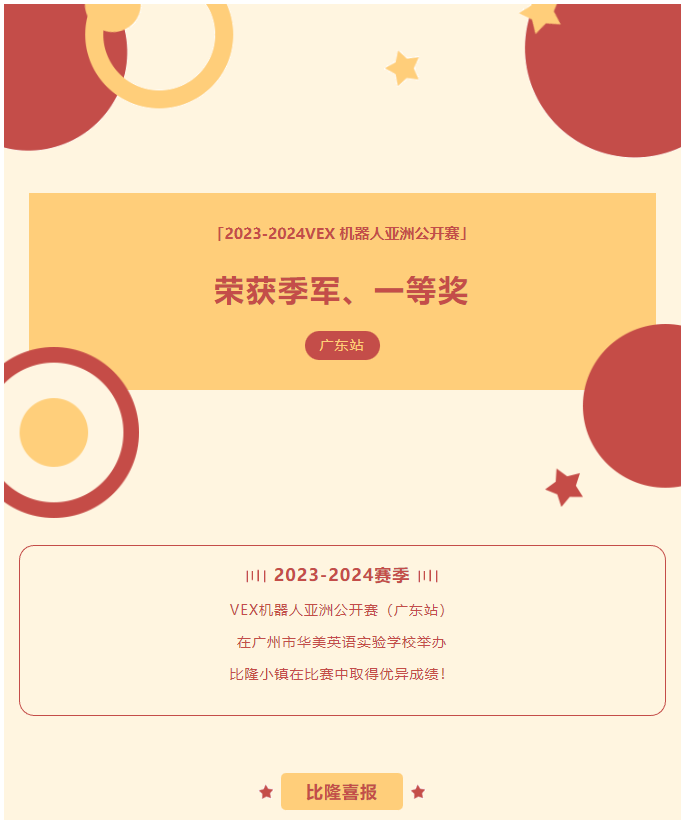 【喜报】比隆小镇2023-2024 VEX机器人亚洲公开赛新赛季喜报来袭!