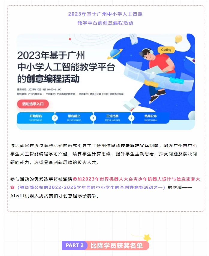 比隆喜报 | 比隆学员在2023年基于广州中小学人工智能教学平台的创意编程活动斩获佳绩!