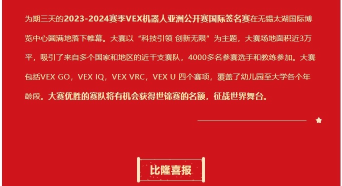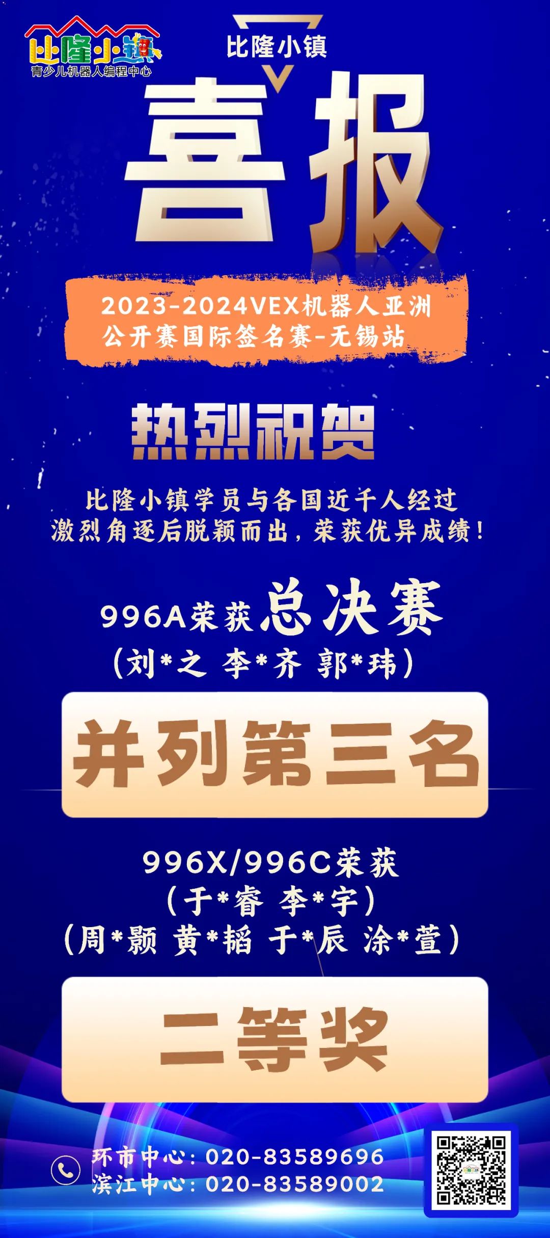 比隆喜报 | 热烈祝贺比隆学员荣获佳绩!2023-2024VEX机器人亚洲公开赛国际签名赛