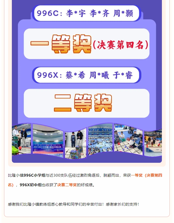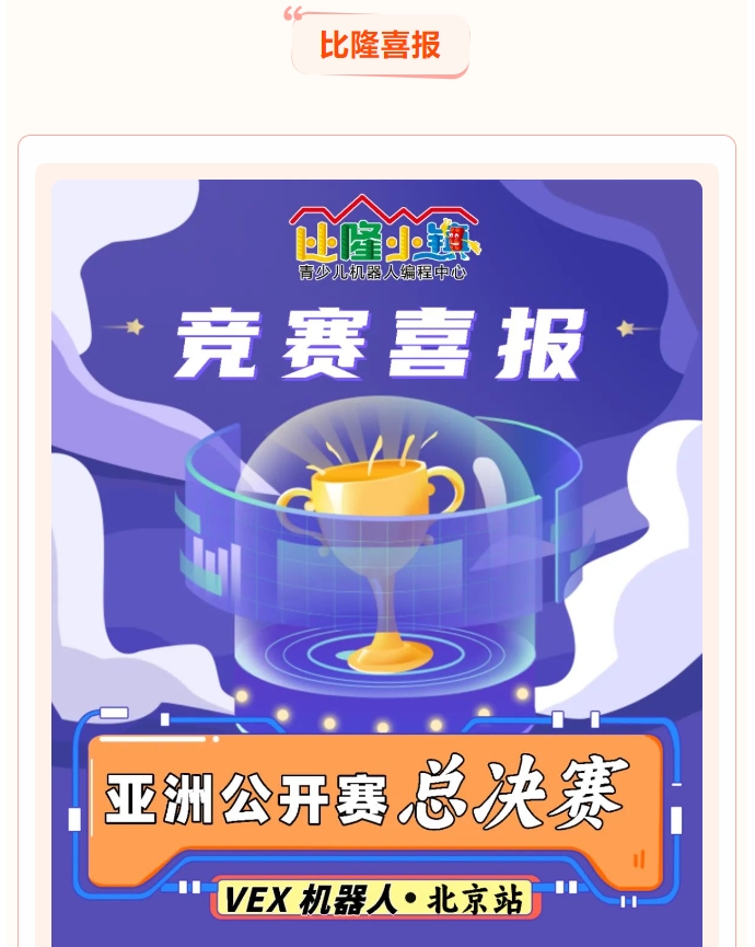 比隆喜报 | 热烈祝贺比隆小镇学员在VEX亚洲公开赛总决赛荣获佳绩!