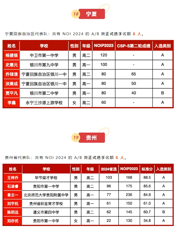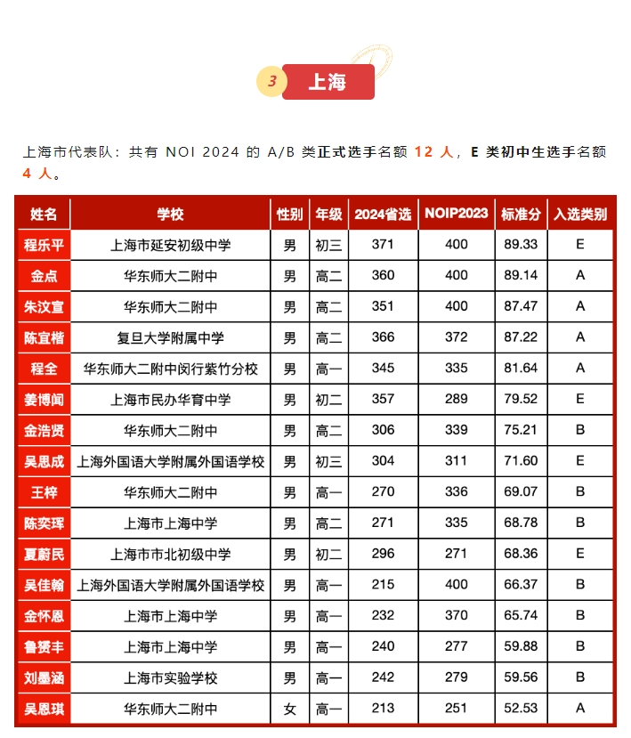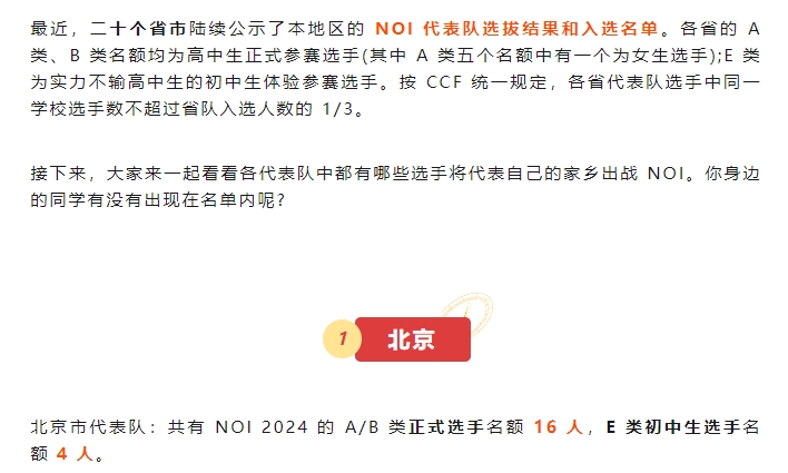 全国多个省市NOI代表队名单公示,快来看看有没有身边的同学?