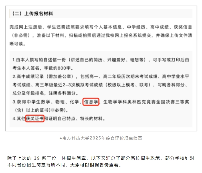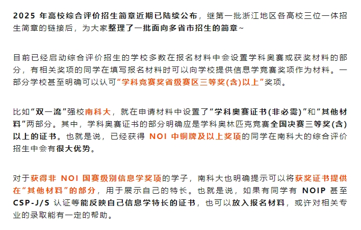 2025 年综合评价招生章程陆续发布,信息学省三就能报考?