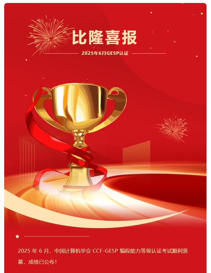 比隆喜报 | 祝贺比隆小镇学员2025年6月GESP认证获得佳绩!