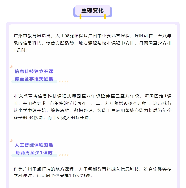 广州义务教育课程调整:三大主科迎来重大改革,人工智能成必修!