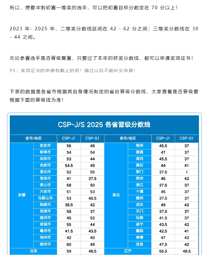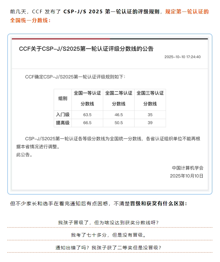 CSP-J/S 初赛 “获奖≠晋级”,两条分数线差异详解!