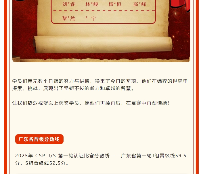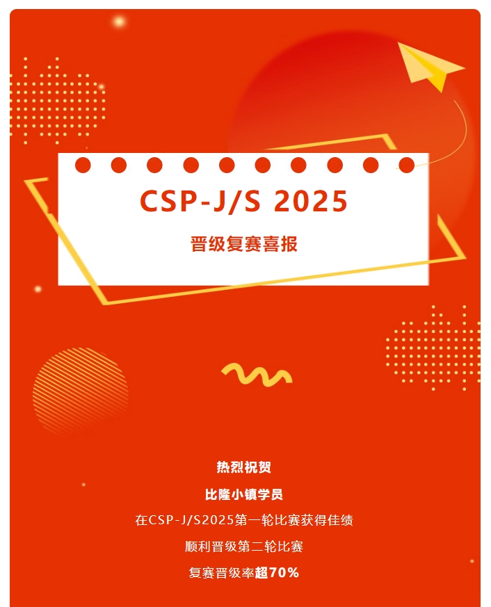 比隆小镇荣誉榜!CSP-J/S 2025初赛晋级喜报来袭!