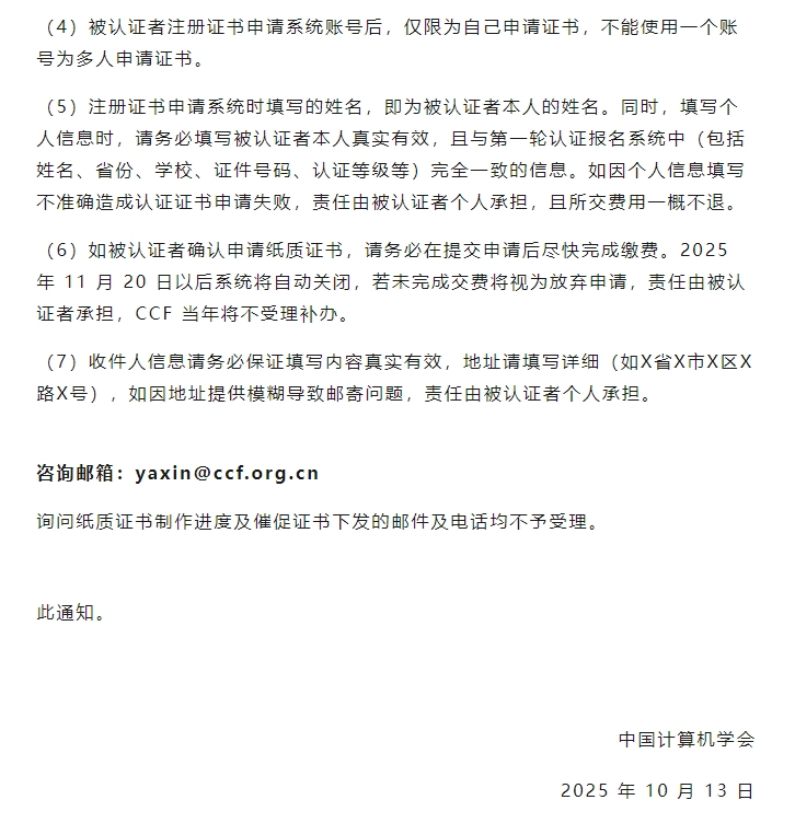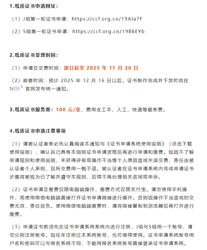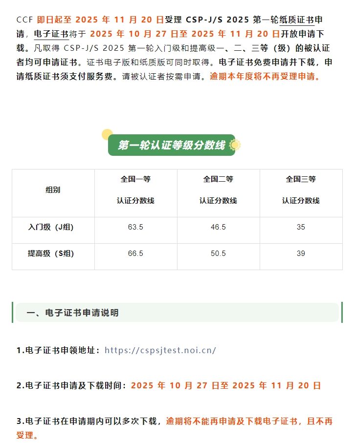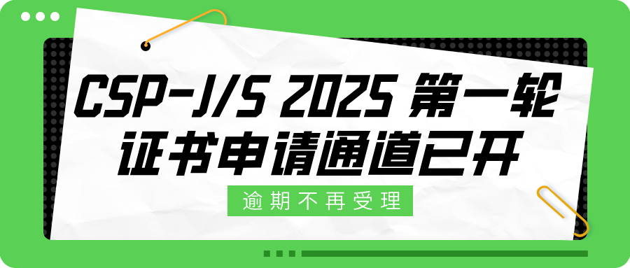 CSP-J/S 2025 初赛证书申请通道已开,逾期不再受理!