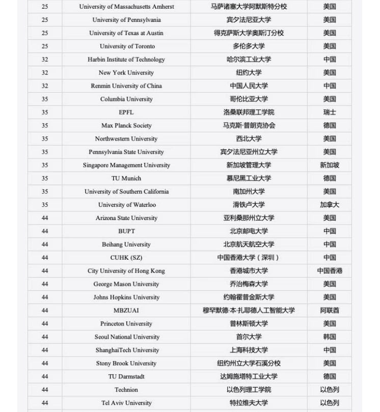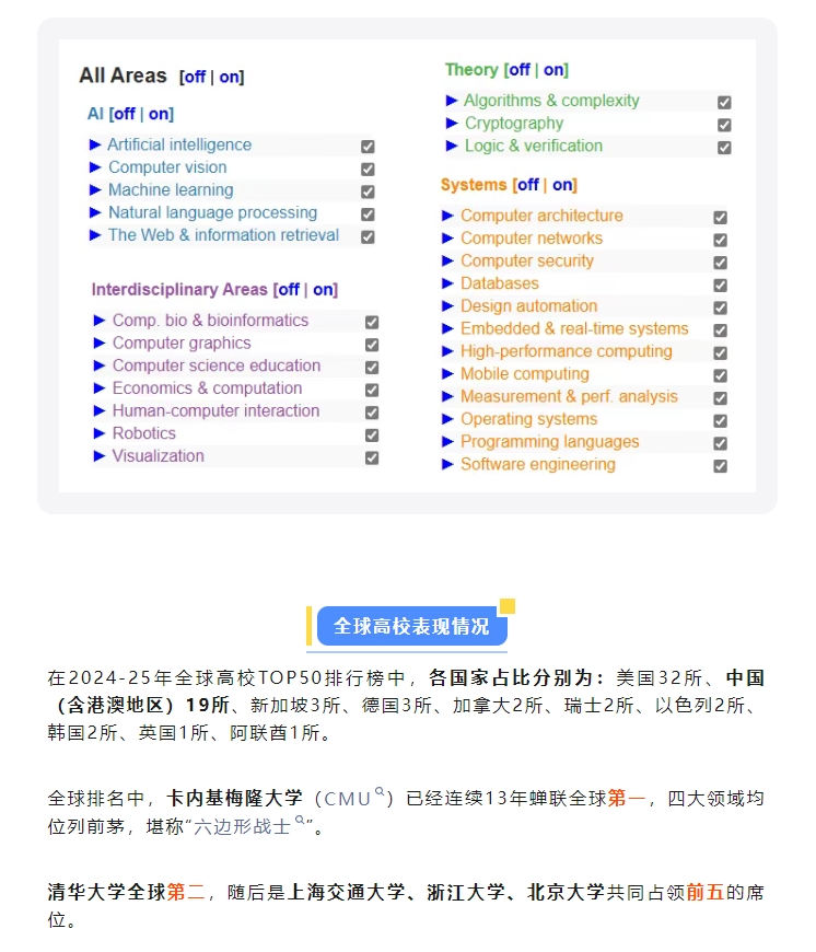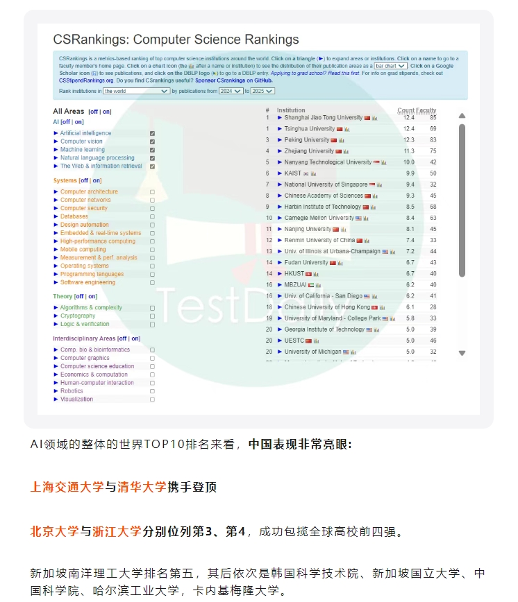 2025 全球计算机专业排名出炉,中国高校 AI 领域领先!
