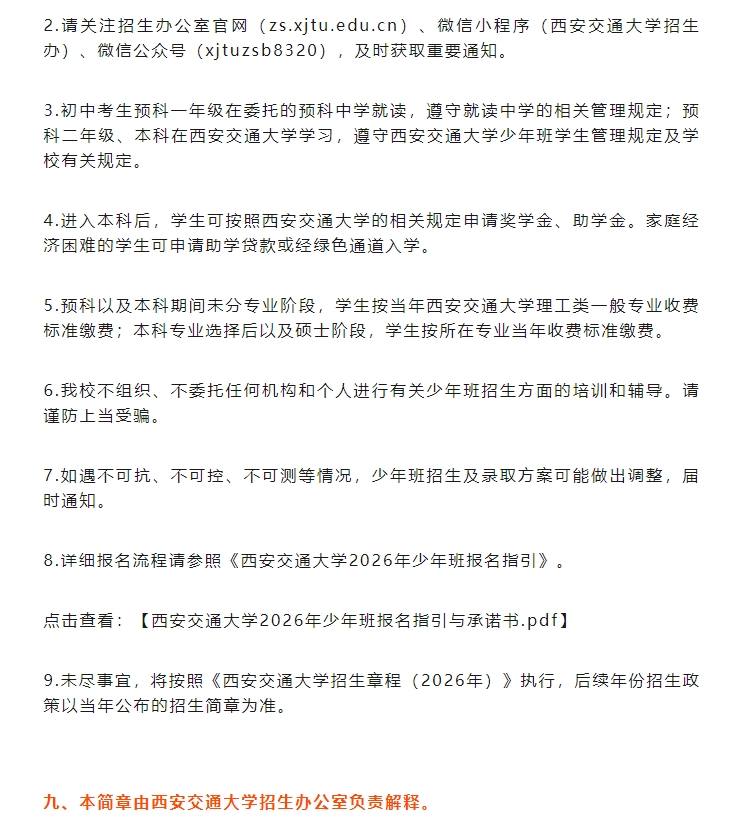 2026年西安交通大学“少年班”招生简章