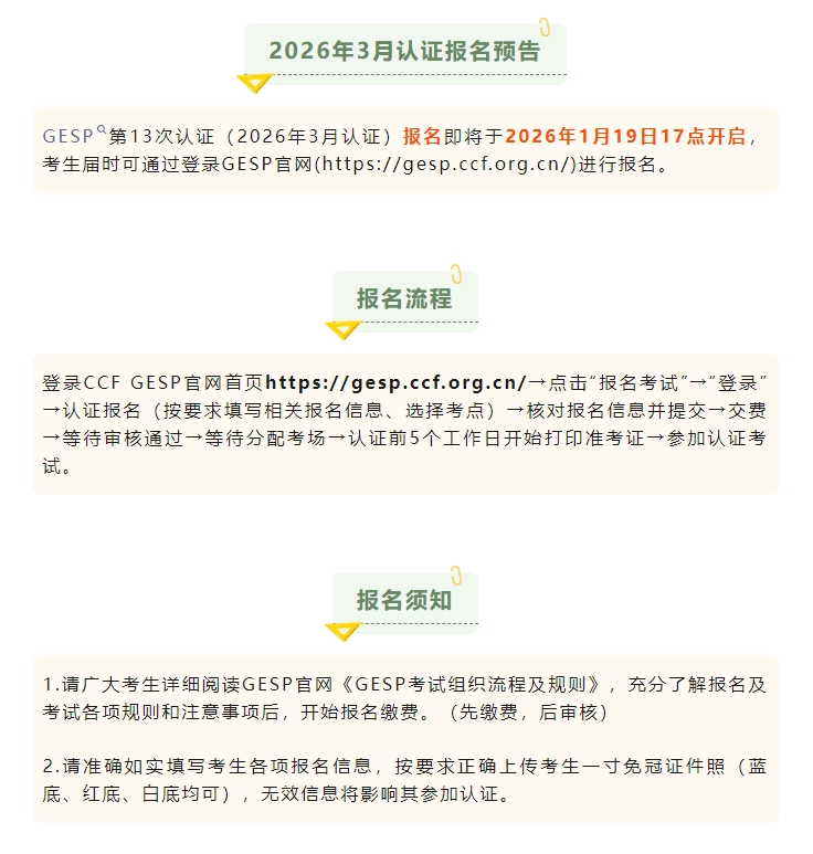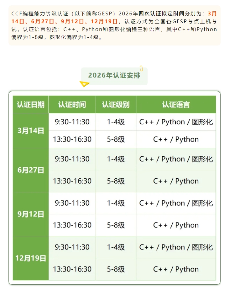 2026年CCF GESP认证安排通知发布!